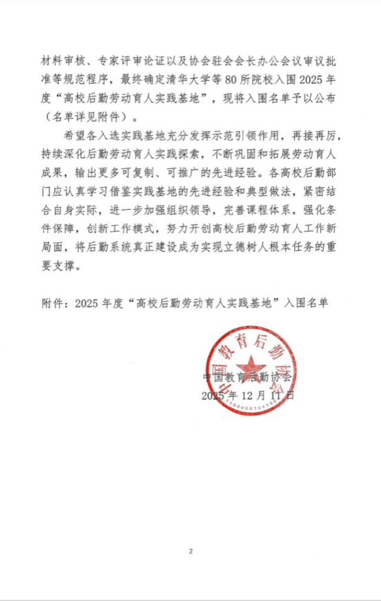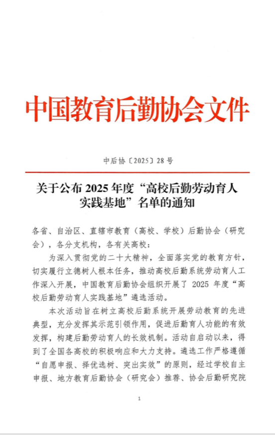 我校入围中国教育后勤协会“高校后勤劳动育人实践基地”名单
